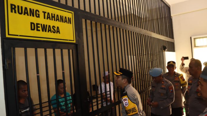 Pemeriksaan dimulai dengan pengecekan jumlah tahanan yang berada di ruang tahanan. Selanjutnya, Wakapolres memeriksa kondisi ruang tahanan satu per satu, memastikan kebersihan dan kenyamanan serta memastikan tidak adanya barang-barang yang tidak semestinya berada di dalam ruang tahanan.