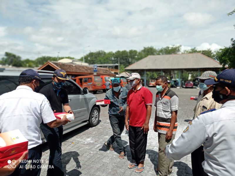 JAVASATU-GRESIK- Di era COVID-19 masa PPKM Darurat, Dinas Perhunbungan (Dishub) Kabupaten Gresik membagikan ratusan nasi kotak kepada ratusan sopir angkutan...