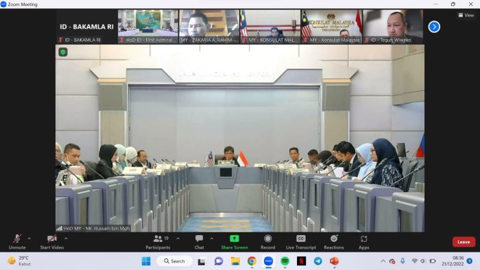 Turut Hadir dalam daring yakni Ketua Delegasi Malaysia Tuan Hussain Bin Moh, Director Of Maritime Security And Sovereignty Division, National Security Council, Prime Minister’s Department beserta jajaran.