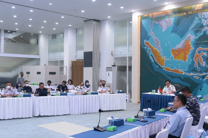 JAVASATU.COM- Plt. Deputi Bidang Informasi, Hukum dan Kerja Sama Laksma Bakamla Dr. Samuel H. Kowaas, M.Sc. CSBA membuka rapat tentang implementasi MoU Pemerintah Indonesia dan Malaysia terkait perlakuan terhadap nelayan oleh badan penegakan hukum kelautan Republik Indonesia dan Malaysia secara hybrid di Aula Ary Hasibuan, Mabes Bakamla RI, Kamis (22/12/2022).