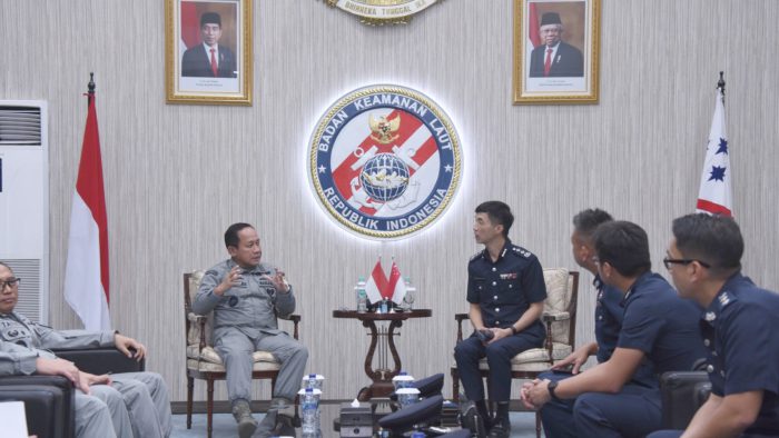 JAVASATU.COM- Kedatangan Senior Assistant Commisioner Cheang Keng Keong beserta jajaran diterima oleh Kepala Bakamla RI Laksdya TNI Dr. Aan Kurnia dalam Courtesy Call ke Mabes Bakamla RI. Para Delegasi melakukan silaturahmi serta mengunjungi Indonesian Maritime Information Center (IMIC), Senin (5/6/2023).