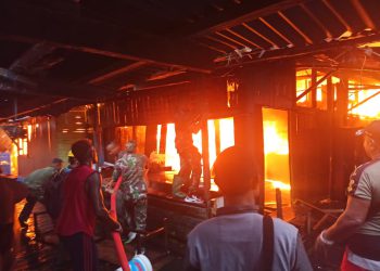 JAVASATU.COM-ASMAT- Setelah berhasil memadamkan api pada kebakaran Pasar Doloks Kota Agats, Kabupaten Asmat, Papua, Minggu (16/10/2022), para Prajurit Yonif Raider...
