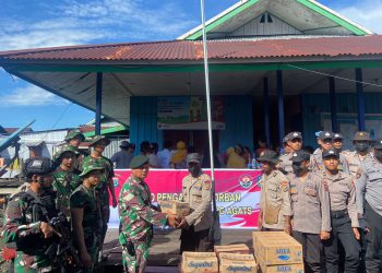 Satgas Yonif Raider 600/Modang Beri Bantuan Korban Kebakaran Agats