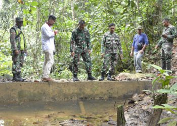 JAVASATU.COM-KUTAI KARTANEGARA- Kepala Staf Kodim (Kasdim) 0906/Kutai Kartanegara (KKR) Kapten Inf. Mahfudz tinjau lokasi penampungan air bersih di Desa Lung...
