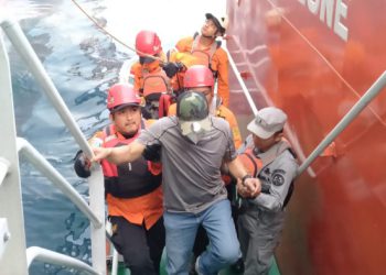 JAVASATU.COM- Personel Stasiun Bakamla Aceh bersama Tim SAR Gabungan mengevakusi ABK kapal MV Herta bendera Portugal di Perairan Selat Benggala...
