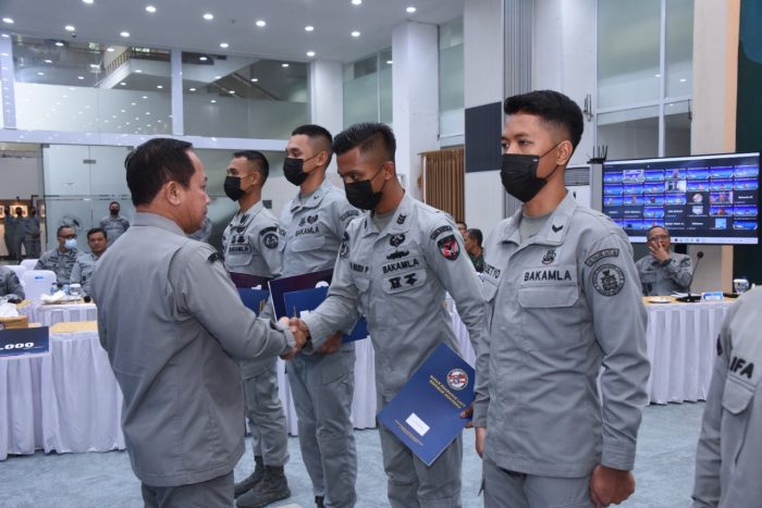 Kepala Bakamla RI Laksdya TNI Dr. Aan Kurnia memimpin langsung prosesi pemberian penghargaan dan uang pembinaan untuk 5 pemenang Bintara teladan.