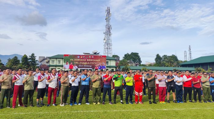 Tampak hadir pula jajaran puluhan personel dari TNI AL, TNI AU, Polri, Forkopimda dan TNI AD sebagai tuan rumah penyelenggara olahraga bersama.