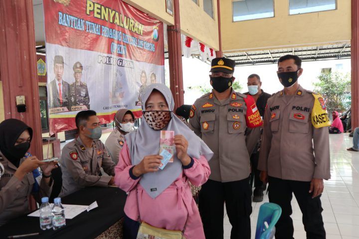 POLRI Ratusan Pedagang Kecil di Gresik Sumringah, Terima Rp 1,2 Juta Usai Didatangi Bhabinkamtibmas 30 September 2021