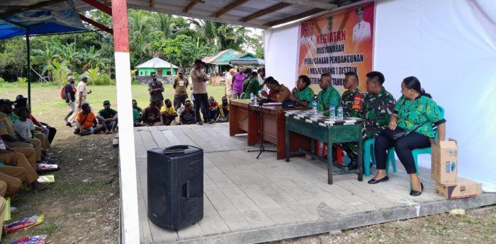 TNI Dukung Pemerataan Pembangunan, Babinsa Koramil Agimuga Hadiri Musrenbang Tingkat Distrik 23 Maret 2023