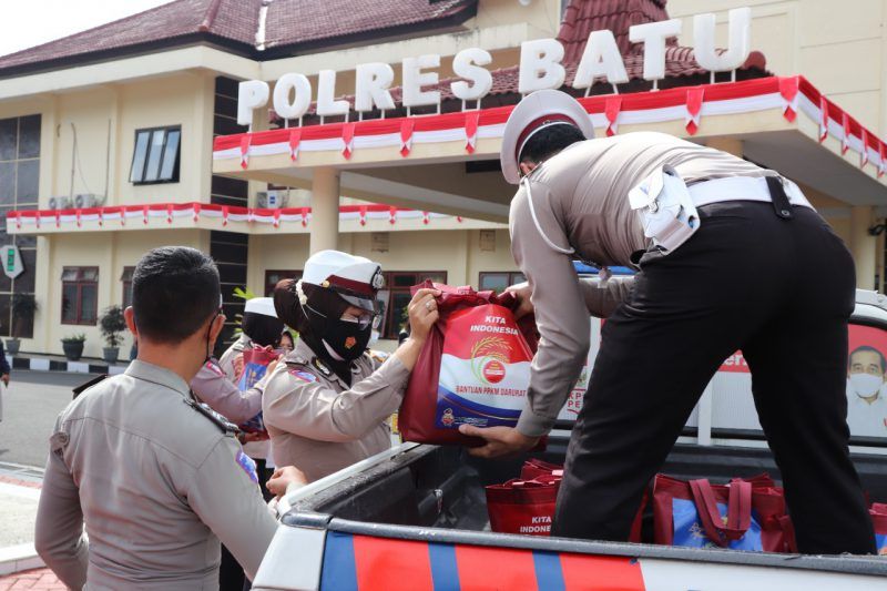 POLRI PKKM Darurat, Bersama Dandim 0817, Kapolres Gresik Beri Bantuan ke Warga Terdampak COVID-19 11 Juli 2021
