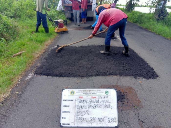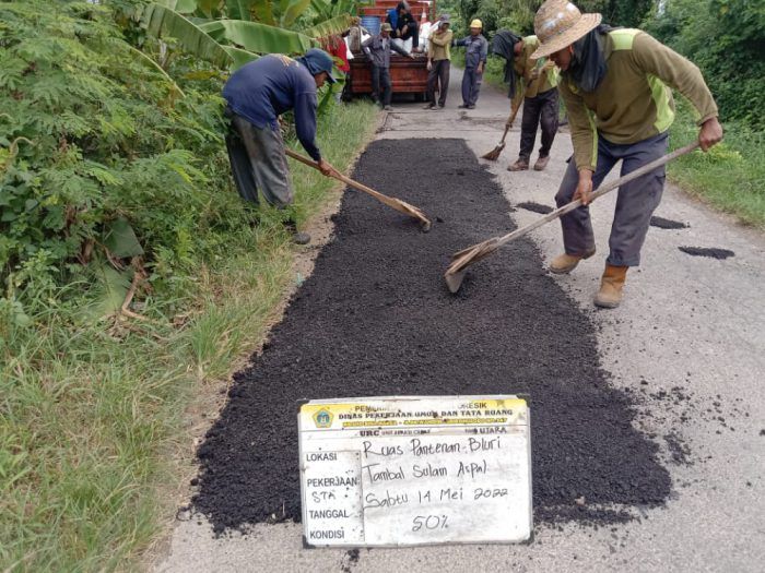 Fasilitas Publik Dinas PU Gresik Tambal Sulam Jalan Rusak di Desa Perbatasan, Pantenan-Bluri 17 Mei 2022