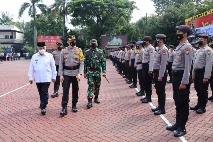 POLRI Jelang Pilkades PAW 2022, Forkopimda Kabupaten Malang Gelar Upacara Apel Pasukan Serpas Pam 30 Maret 2022