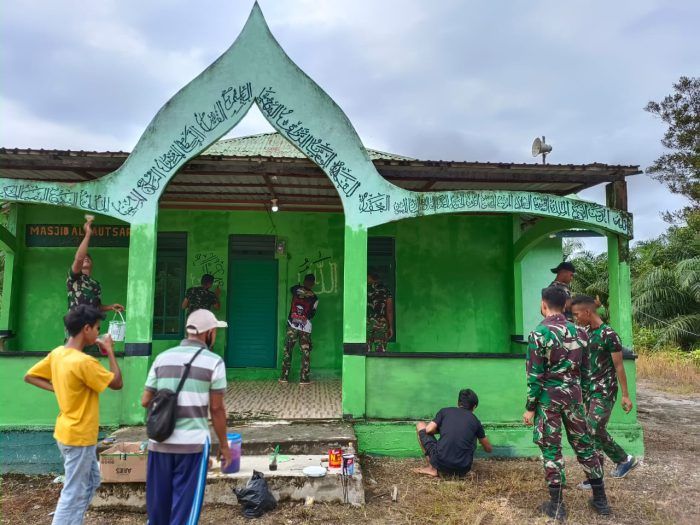 TNI Selain Jaga Keutuhan NKRI di Perbatasan, Satgas Pamtas Yonif 645/GTY Ngecat Masjid di Sanggau Kalbar 28 September 2022