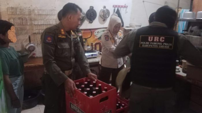 Keamanan Razia Warung ‘Remang-remang’ di Sidayu, Satpol PP Gresik Amankan Ratusan Botol Miras 29 Februari 2024