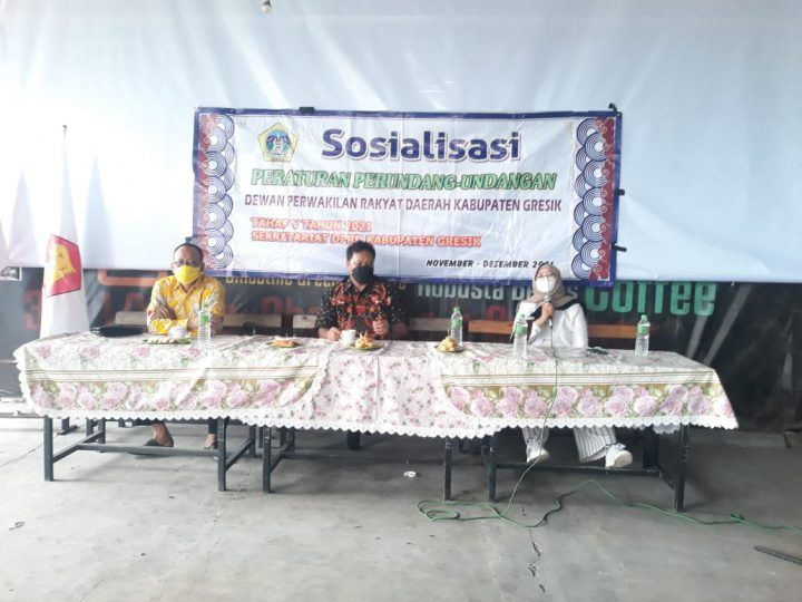 DPRD Tiga Wakil Ketua DPRD Gresik Sosialisasi Peraturan Perundangan Tahap V di Benjeng 5 Desember 2021