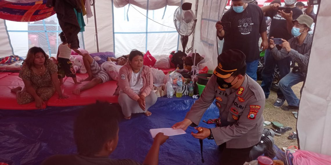 POLRI Kapolres Gresik Datangi Posko Penanggal di Lumajang Salurkan Bantuan Korban Bencana Semeru 21 Desember 2021
