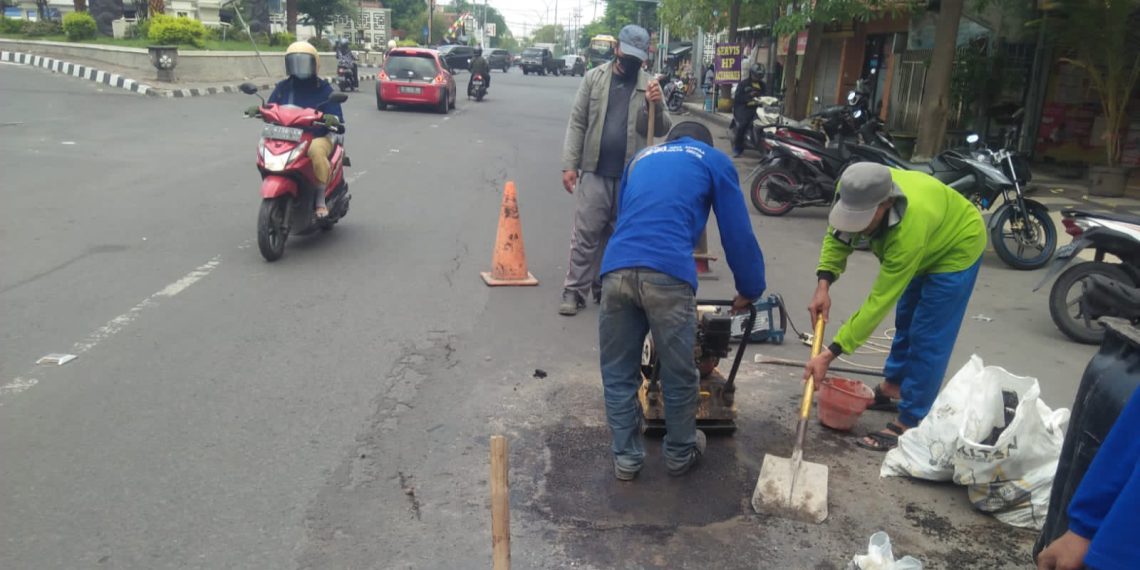 Fasilitas Publik Giliran Jalan Berlubang di Kapten Dulasim Ditambal Tim URC Bina Marga Gresik 26 Maret 2023