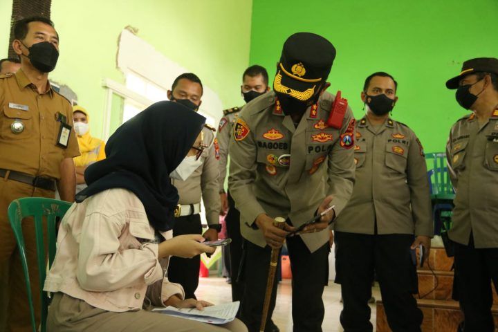 POLRI Cek Vaksinasi di Kendalpayak, Kapolres Malang Kenalkan Aplikasi Peduli Lindungi 31 Agustus 2021