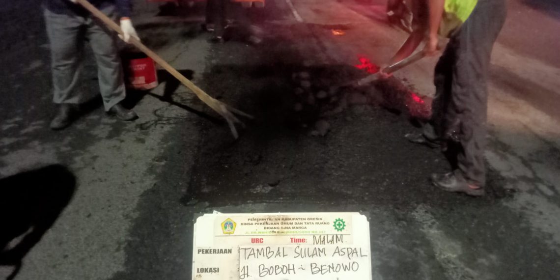 Fasilitas Publik URC Bina Marga Gresik Tambal Lubang Ruas Jalan Boboh Menganti-Benowo Surabaya 12 Juni 2022