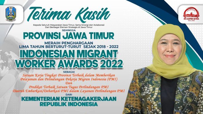 Pemerintah Daerah Kali Kelima, Pemprov Jatim Raih Predikat Layanan dan Pelindungan PMI Terbaik 24 Desember 2022