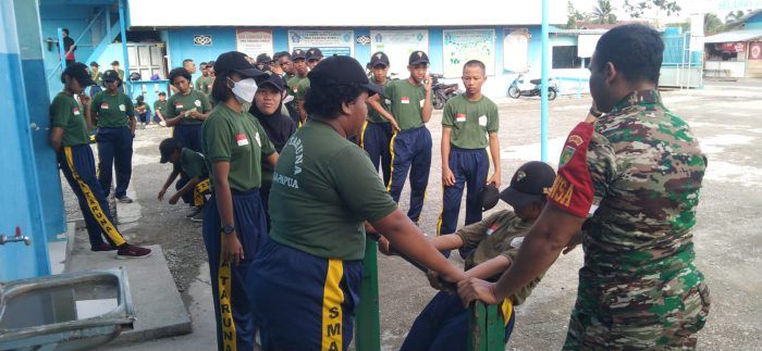 TNI Tanamkan Disiplin Sejak Dini, Babinsa Koramil Timika Ajarkan Kesamaptaan Jasmani di SMA Taruna 15 Januari 2023