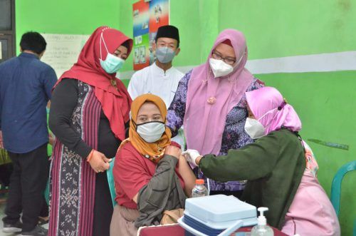 Pemerintah Daerah Tinjau Vaksinasi MWCNU Wringinanom, Bu Min: Kurang 6 Persen Herd Immunity Gresik Tercapai 3 Oktober 2021