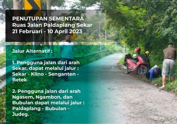 Fasilitas Publik Ruas Jalan Paldaplang-Sekar Ditutup Sementara mulai 21 Februari hingga 10 April 2023 22 Februari 2023