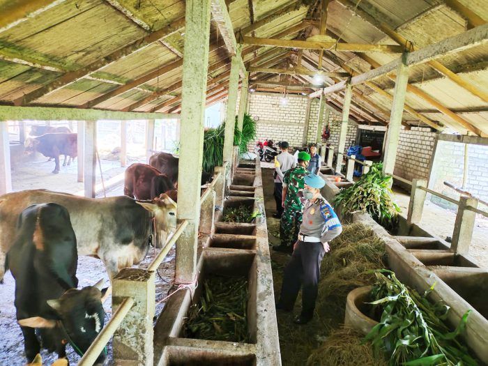 TNI Cegah PMK, Babinsa dan Bhabinkamtibmas di Pucuk Lamongan Cek Hewan Ternak Sapi Jelang Iduladha 7 Juli 2022