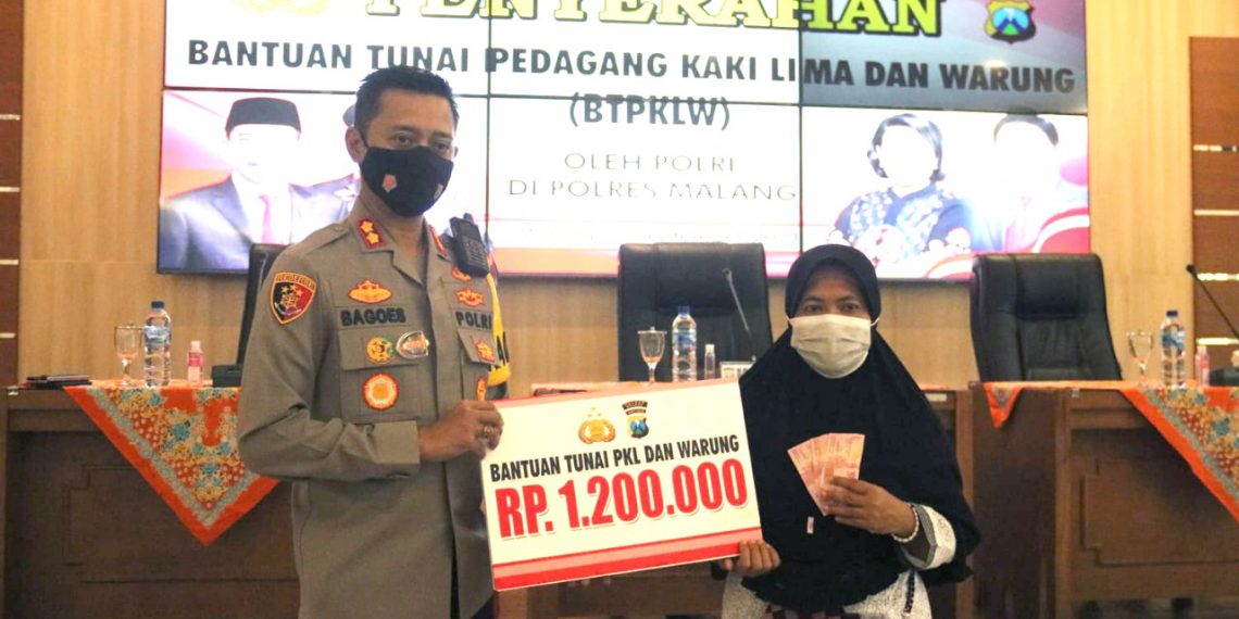 Bantuan Pemerintah Ringankan Beban Pedagang Kecil, Polres Malang Salurkan Bantuan Tunai dari Pemerintah 21 September 2021