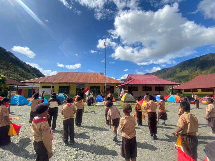 TNI Saka Wira Kartika Kodim 1714/Puncak Jaya Ajarkan Kepramukaan bagi Siswa SD Inpres Mulia 26 November 2022