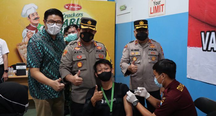 POLRI Jelang Ramadan, Polres Gresik Vaksin Ratusan Karyawan PT Mega Global Food Industri 30 Maret 2022