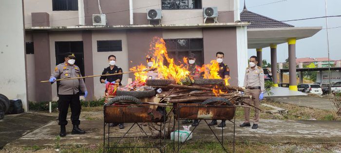 TNI Prajurit Satgas Pamtas Yonif 645/GTY Jadi Saksi Pemusnahan Media Pembawa HPHK & OPTK 1 Desember 2022