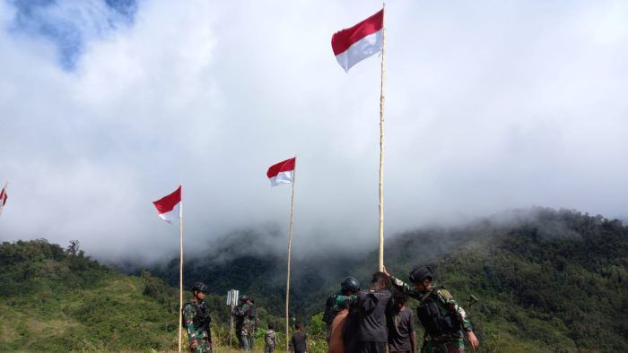 TNI Gelorakan Kemerdekaan RI, Satgas Yonif PR 433/JS Ajak Kibarkan Bendera Merah Putih 10 Agustus 2023