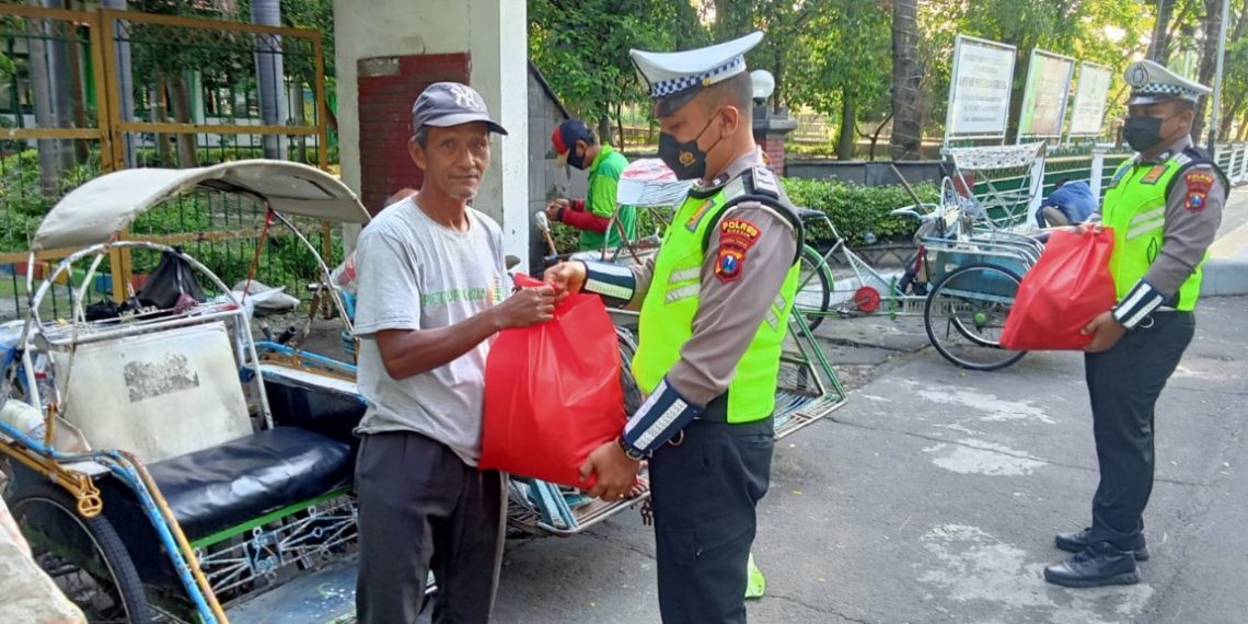 POLRI Polres Gresik Bagikan Sembako ke Petugas Kebersihan, Tukang Becak dan Sopir Angkot 14 Januari 2023