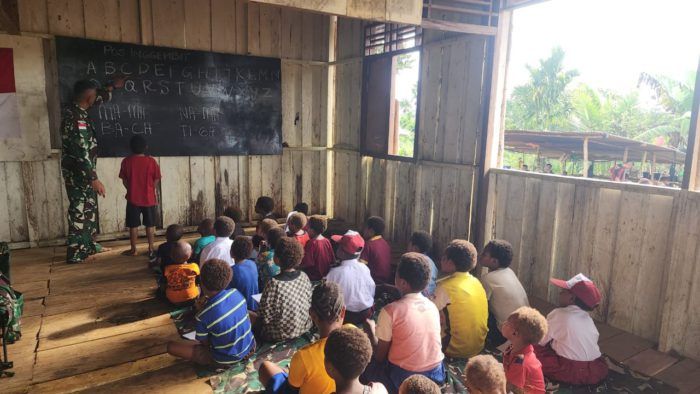 Kabupaten Boven Digoel Sekolah Rusak, Satgas TNI Gelar Kelas Darurat Calistung di Perbatasan Papua 16 Juni 2025