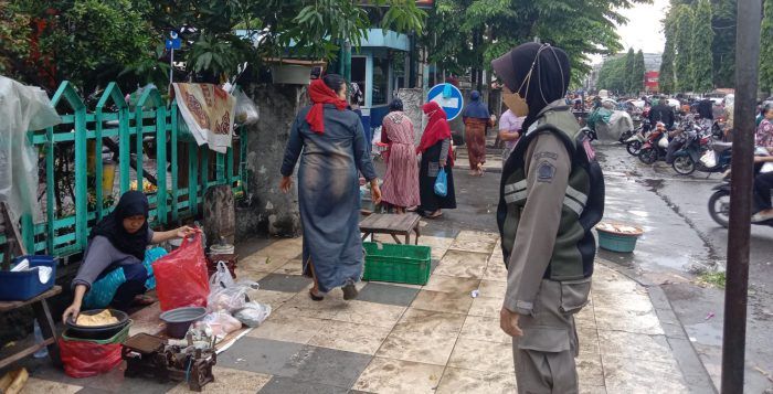 Fasilitas Publik Ini Maksud Sapol-PP Tertibkan PKL di Trotoar Depan Pasar Baru Gresik 8 Februari 2023