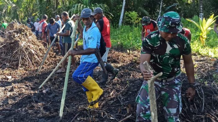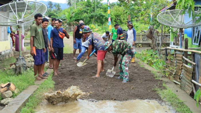 Berita Warga dan TNI Gotong Royong Perbaiki Jalan Becek di Desa Wama Tidore Kepulauan 30 Oktober 2025