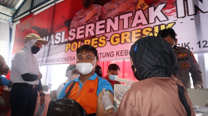 POLRI Akselerasi Vaksin Booster Jatim, 600 Dosis Disuntikkan di PT Nankai Indonesia Gresik 13 Maret 2022